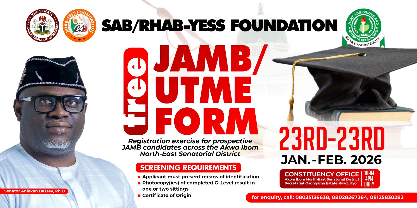 - SENATOR ANIEKAN BASSEY TAKES EDUCATION TO THE GRASSROOTS, LAUNCHES FREE JAMB REGISTRATION ACROSS AKWA IBOM NORTH-EAST